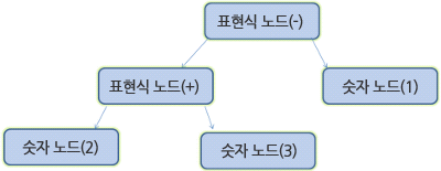 예를 들면 2+3-1 과 같은 표현식은 다음과 같은 트리가 된다.