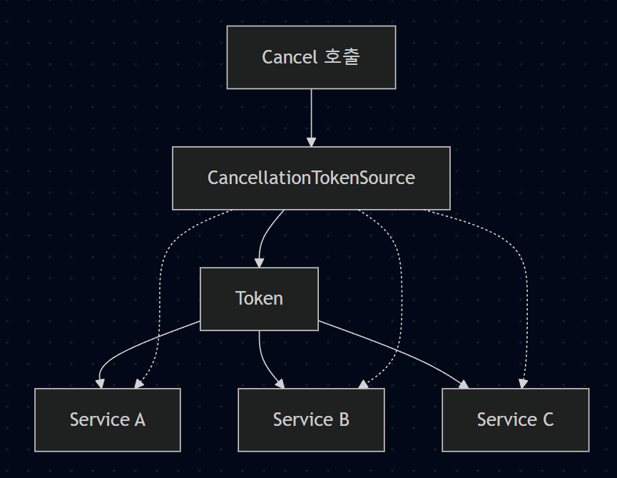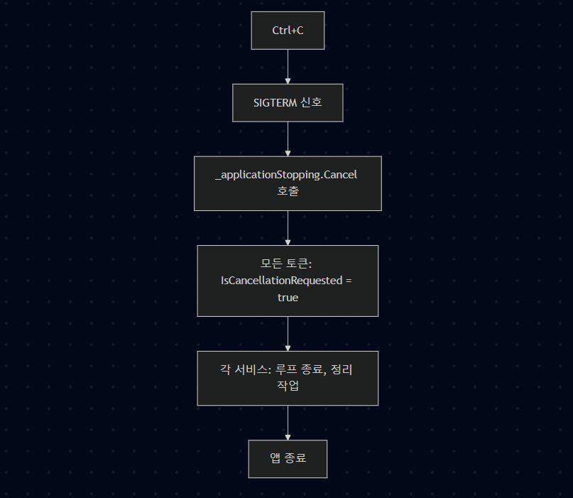 CancellationToken은 비동기 작업을 안전하게 취소하기 위한 신호 체계다. 앱이 종료 요청을 받으면 토큰이 취소 상태가 되고, 실행 중인 작업들은 이를 확인하여 안전하게 중단된다.