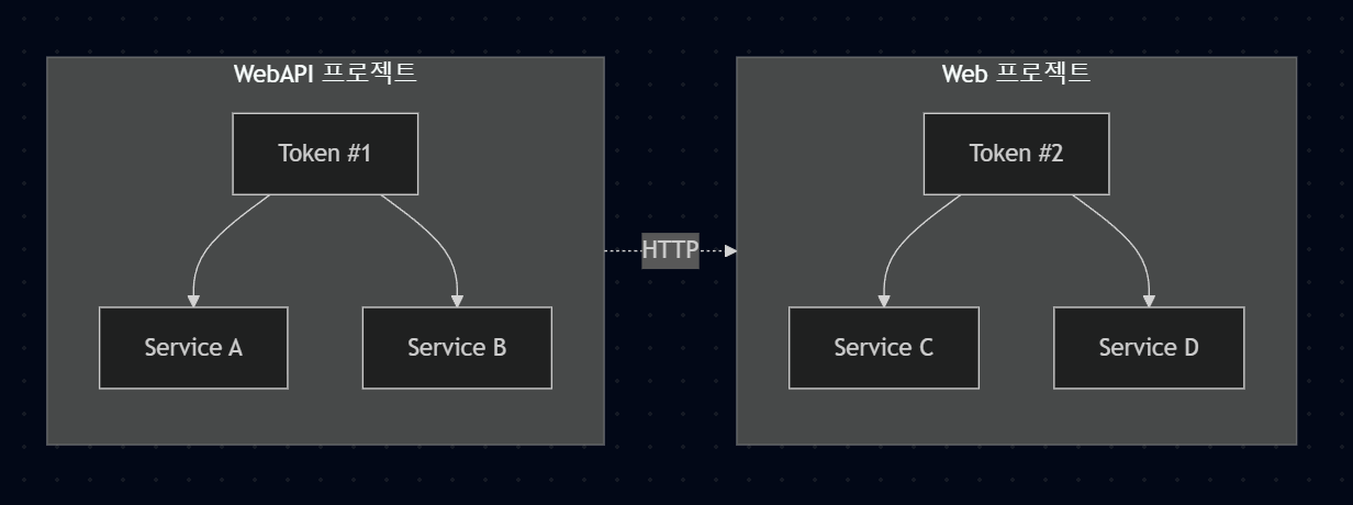 솔루션에 여러 프로젝트가 있을 때, 각 프로젝트는 독립적인 프로세스로 실행되며 각자의 토큰을 가진다.