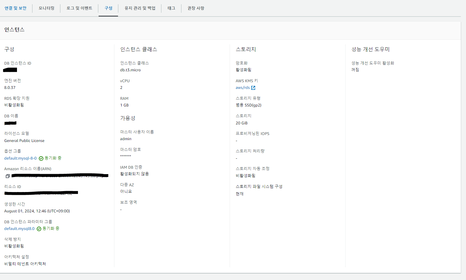 timezone, 인코딩 등 DB 인스턴스 적용 옵션을 지정할 수 있다