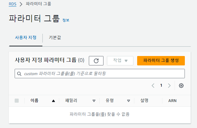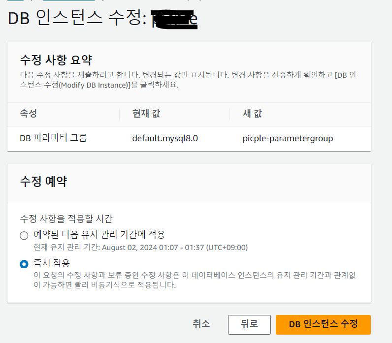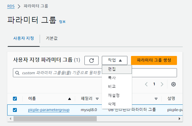 이렇게 자신의 파라미터 그룹으로 변경 후 즉시 적용으로 수정
