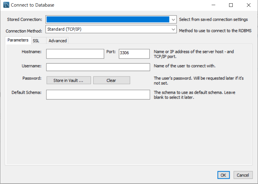 MySQL WorkBench사용해서 접속한 뒤 만들어보겠다. 위 Database에서 아까 생성 시 기억해야했던 정보들이 필요하다.