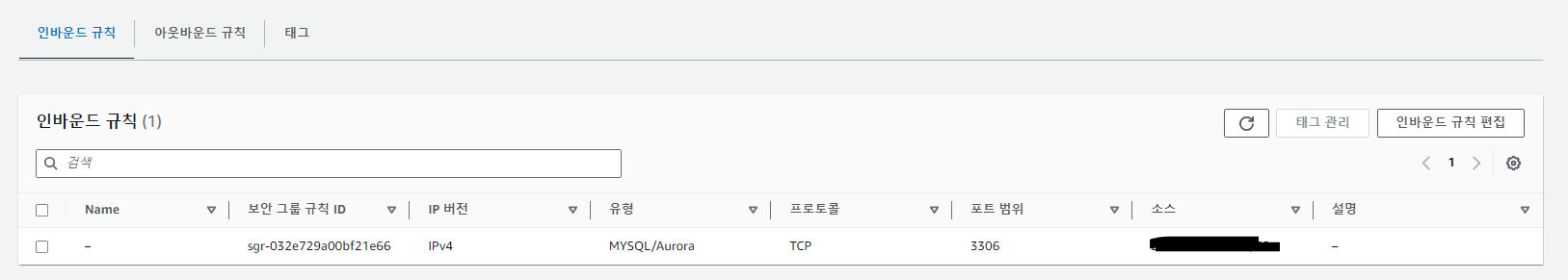 연결 및 보안에서 보안 그룹 규칙을 보면 Inbound에 자신의 로컬IP, Outbound는 모든 트래픽인 0.0.0.0/0일 것이다. 여기서 현재 보안 그룹 확인하자.
