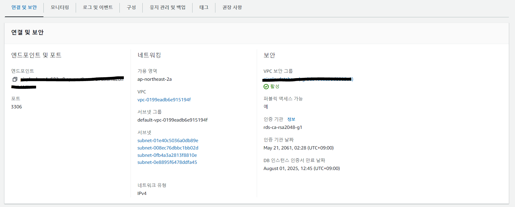 url: jdbc:mysql://(엔드포인트 추가 괄호는 제거)