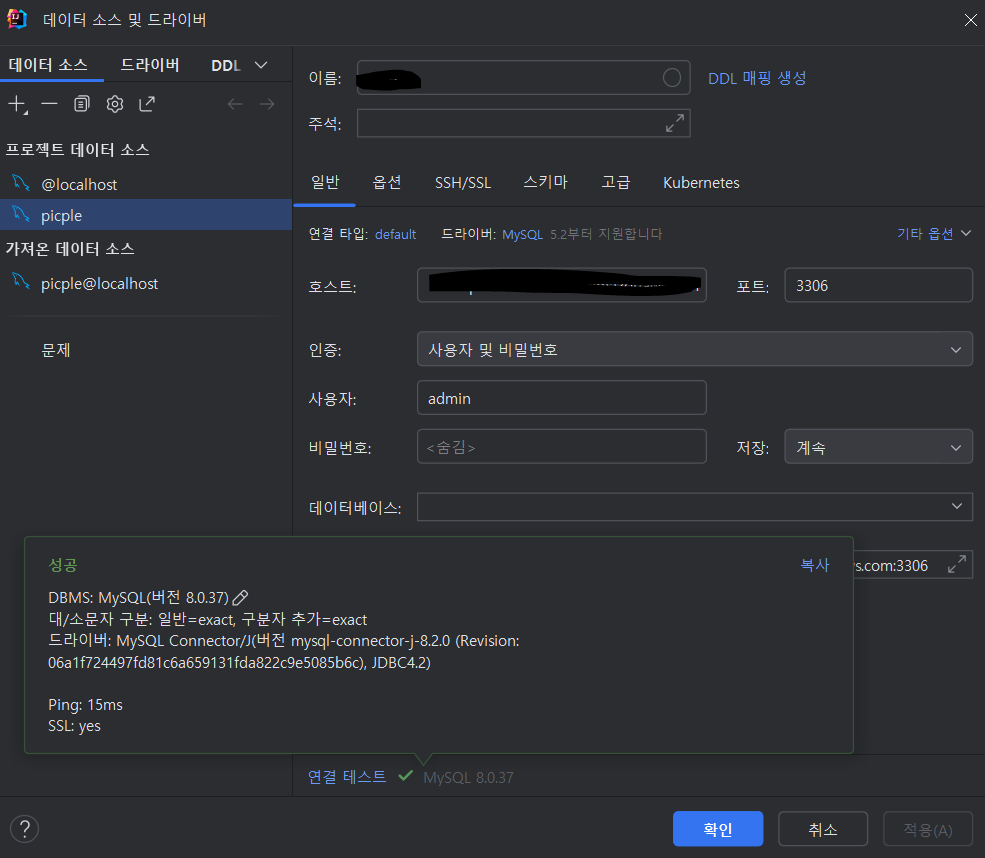 다만 인텔리제이에서 DataGrip을 사용중인데 자동으로 데이터베이스 드라이버를 다운로드 해 가장 최신 버전을 사용중이라면 일치하는 버전이 없을수도 있다.
