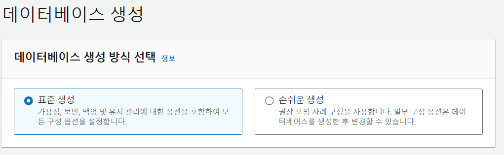 RDS 인스턴스를 생성하기 위해 데이터베이스 생성을 클릭하자