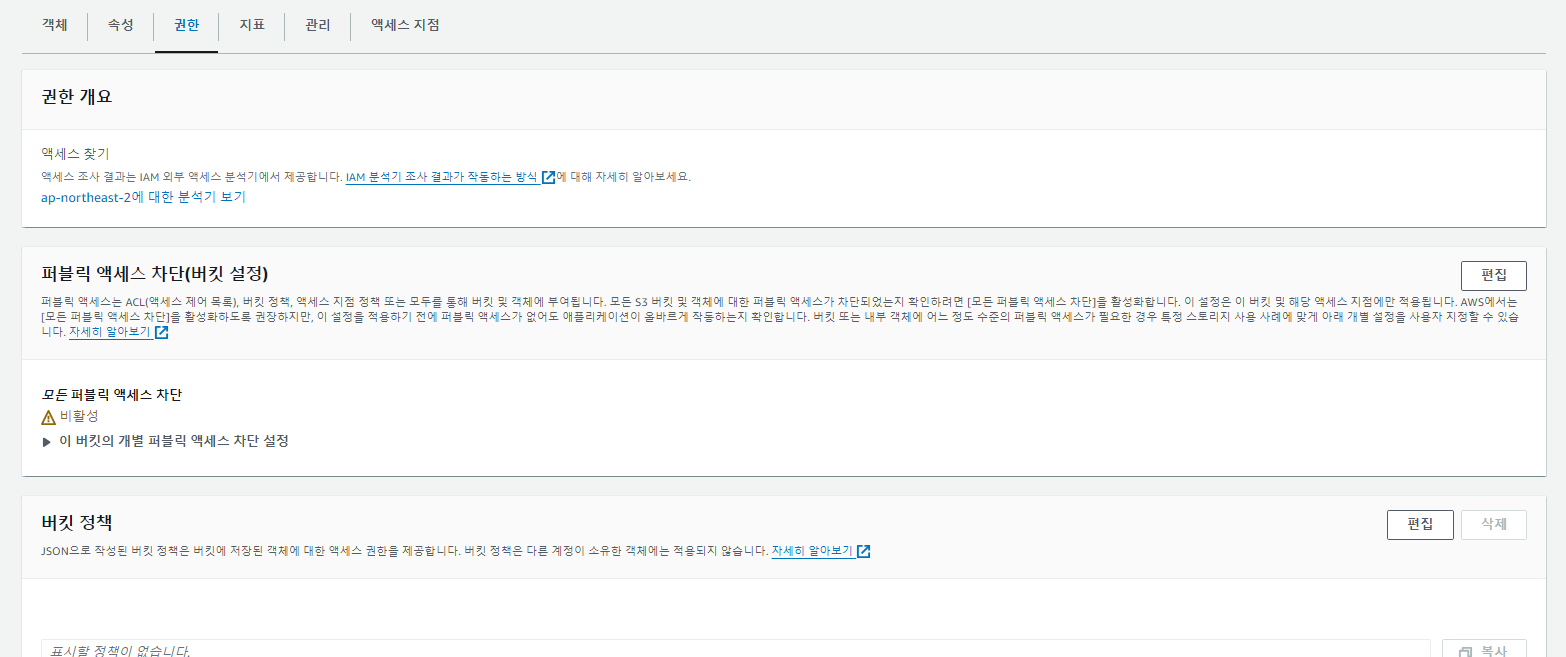 이후 업로드한 사진을 확인하기 위해 퍼블릭엑세스 차단을 해제한다