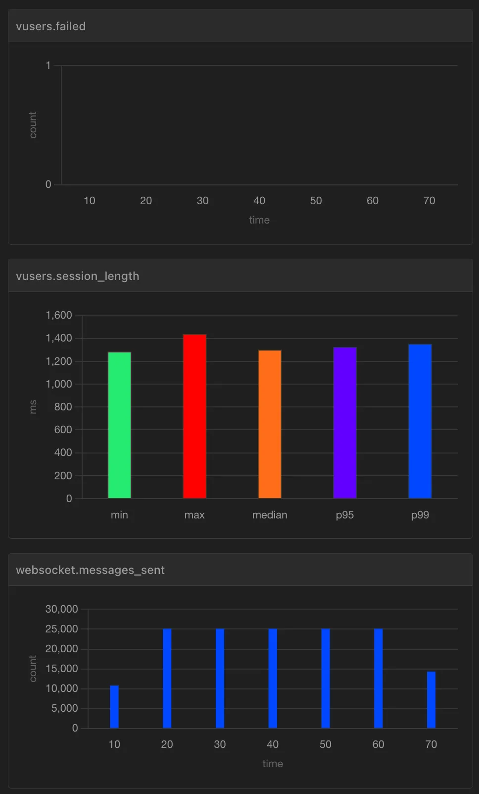 결과를 파일로 저장하려면: `artillery run –output test-report.json test.yml