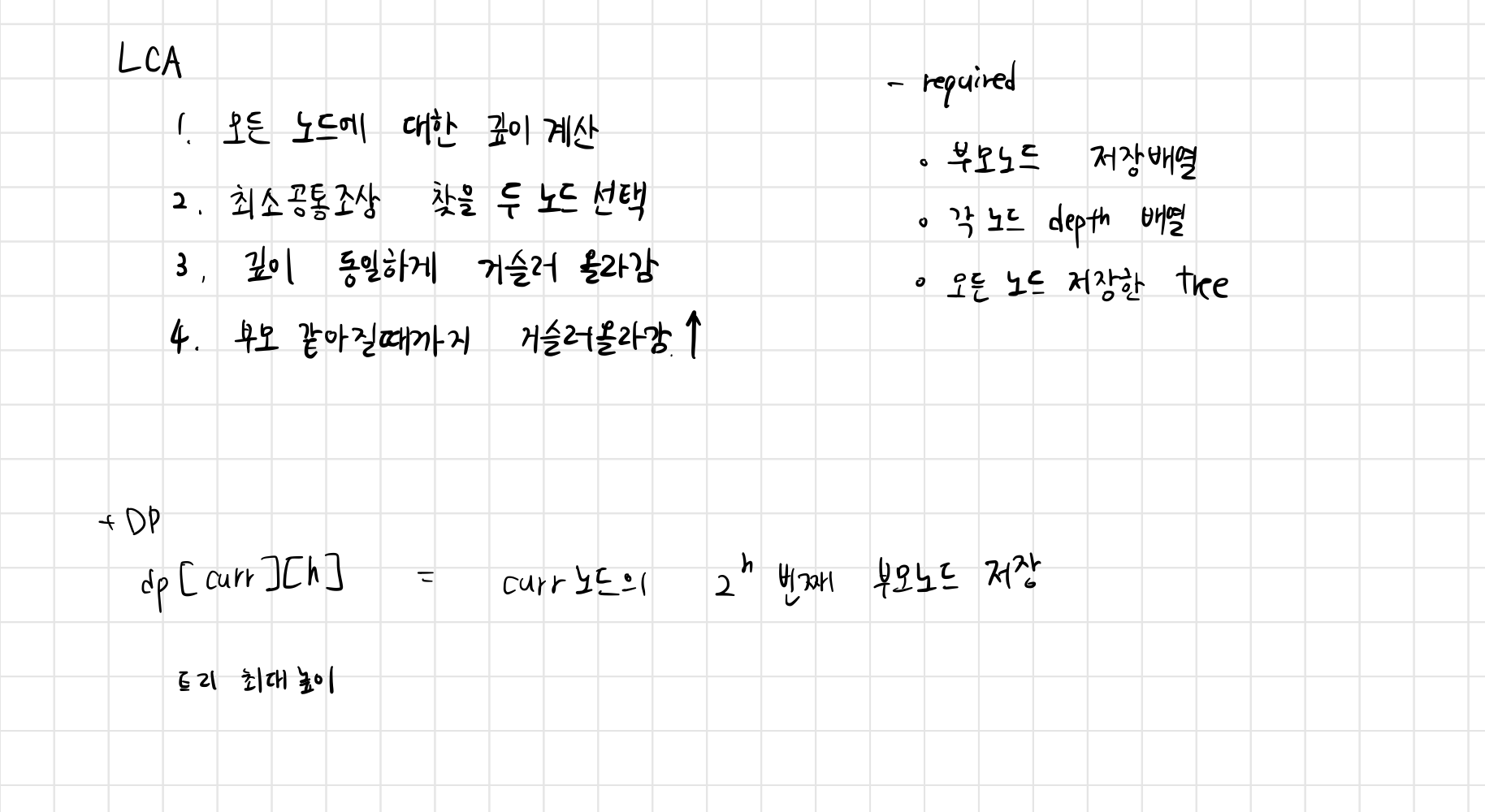 조상 노드에 대한 메모이제이션으로 dp[][]를 구성