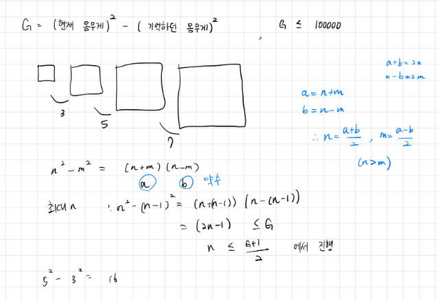 BOJ_1484_다이어트 (Java)