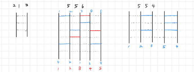 입력으로 주어지는 가로선이 서로 연속하는 경우는 없다.