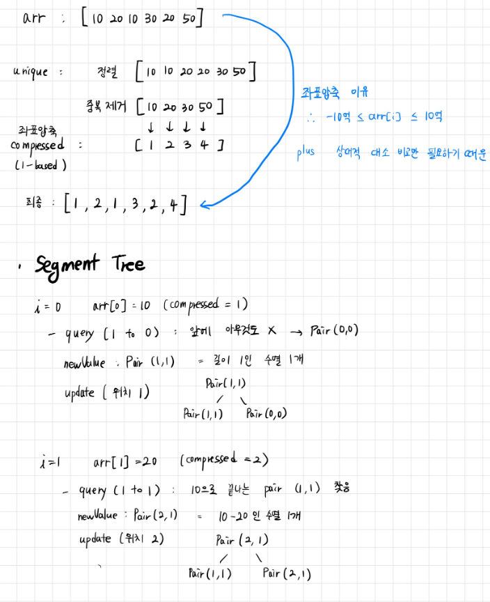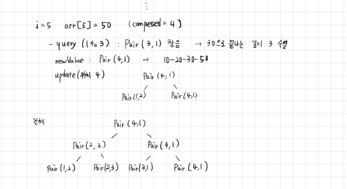 Pair curr = query(1, compressed[i]-1, 1, uniqueSize, 1);