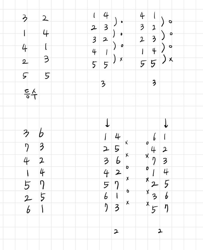첫째 줄에는 테스트 케이스의 개수 T(1 ≤ T ≤ 20)가 주어진다. 각 테스트 케이스의 첫째 줄에 지원자의 숫자 N(1 ≤ N ≤ 100,000)이 주어진다. 둘째 줄부터 N개 줄에는 각각의 지원자의 서류심사 성적, 면접 성적의 순위가 공백을 사이에 두고 한 줄에 주어진다. 두 성적 순위는 모두 1위부터 N위까지 동석차 없이 결정된다고 가정한다.