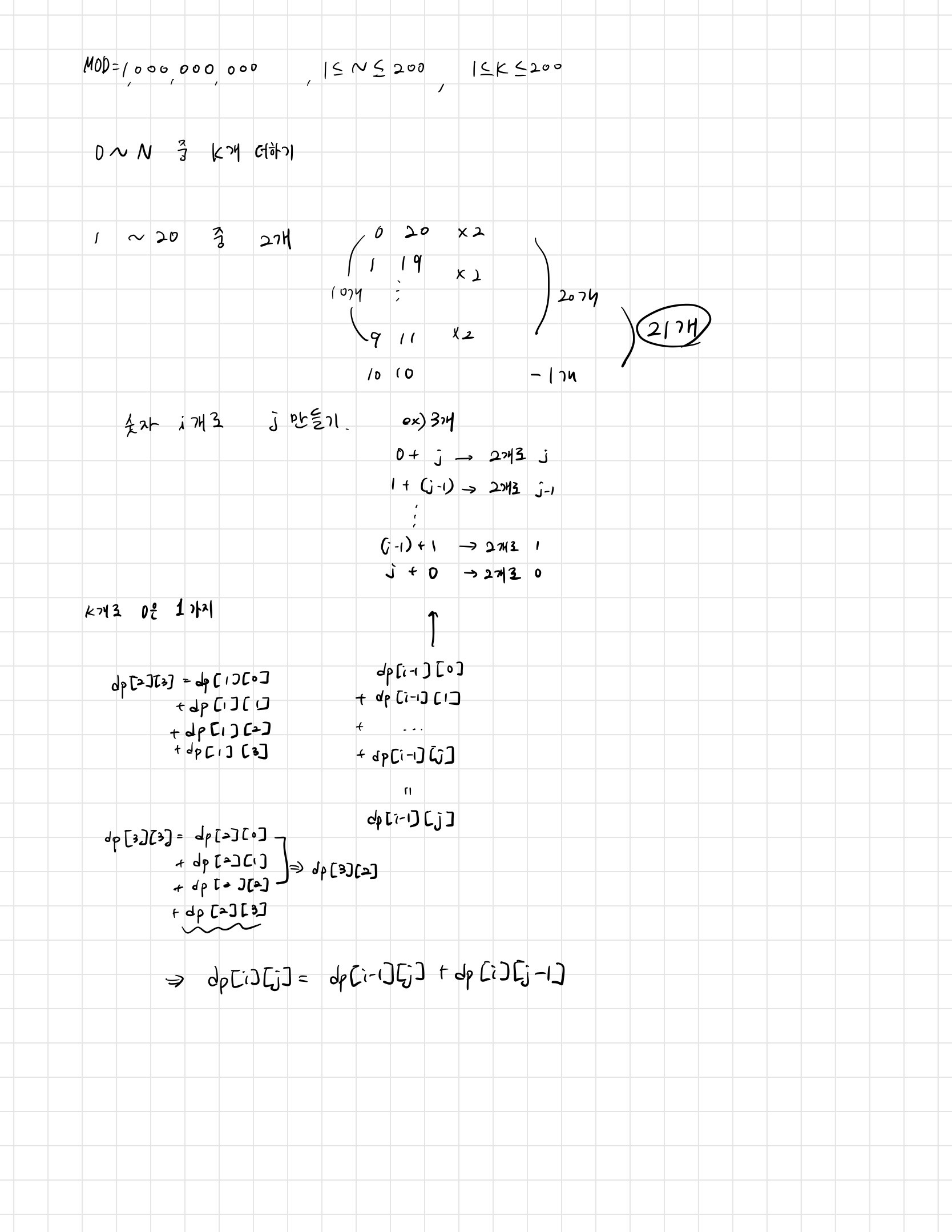 0부터 N까지의 정수 K개를 더해서 그 합이 N이 되는 경우의 수를 구하는 프로그램을 작성하시오.