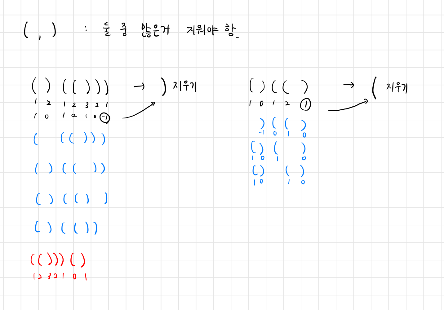 - A가 올바른 괄호열이면 (A)는 올바른 괄호열이다.