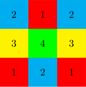 You don’t like using too many colors. Please find the minimum number of colors needed to color the grid.