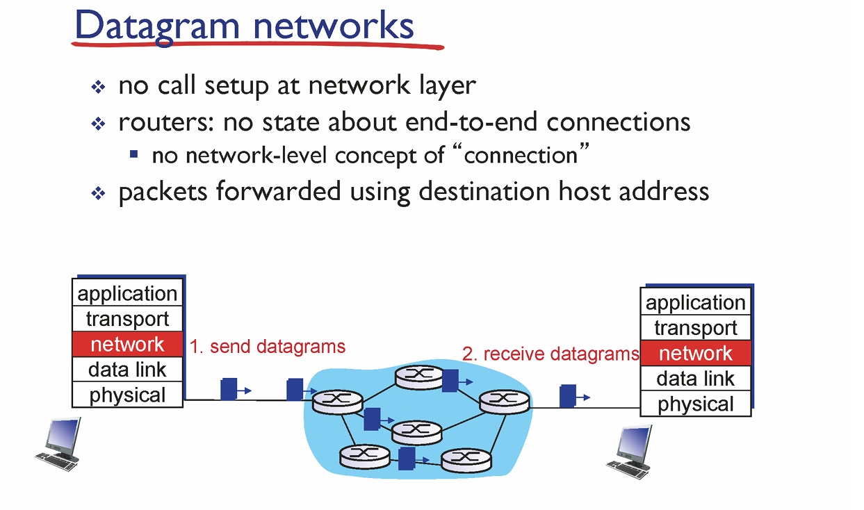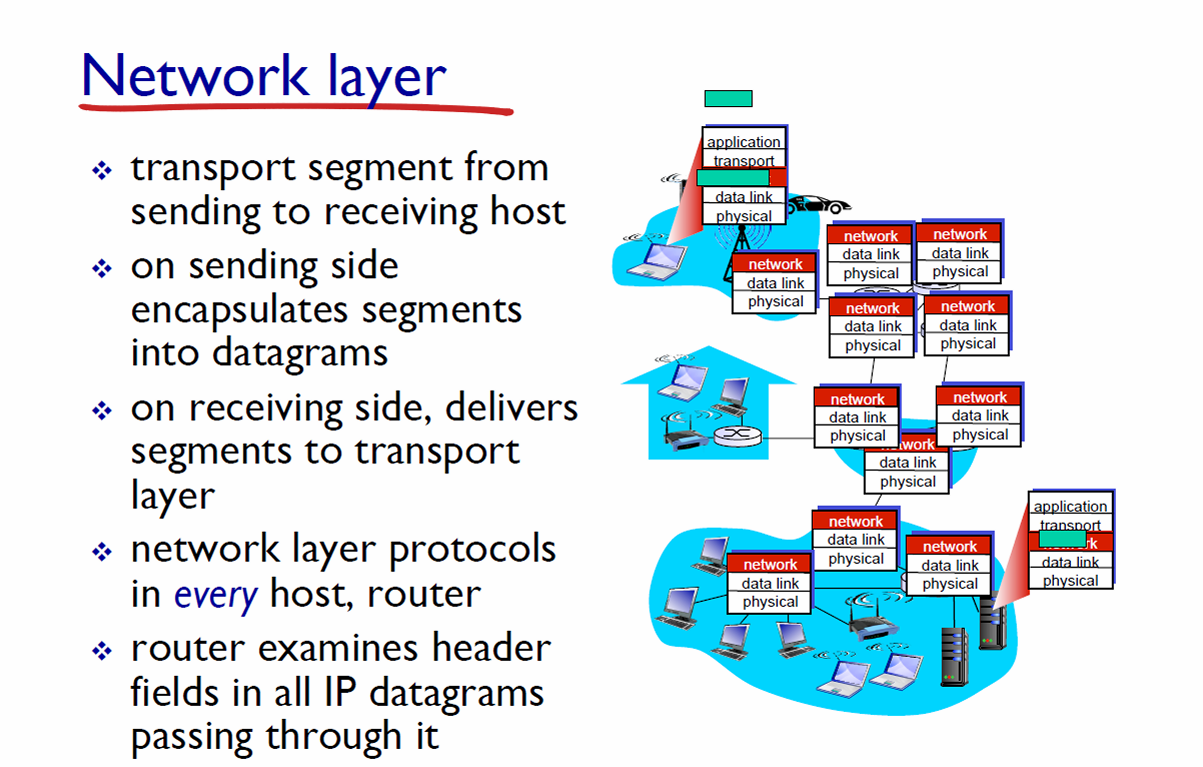 네트워크 레이어 = “배송담당” 이기때문에 중간에 라우터들은 구현을 네트워크 레이어까지만 하면 된다. 어디로 전달할지만 정해주면 되기 때문이다.