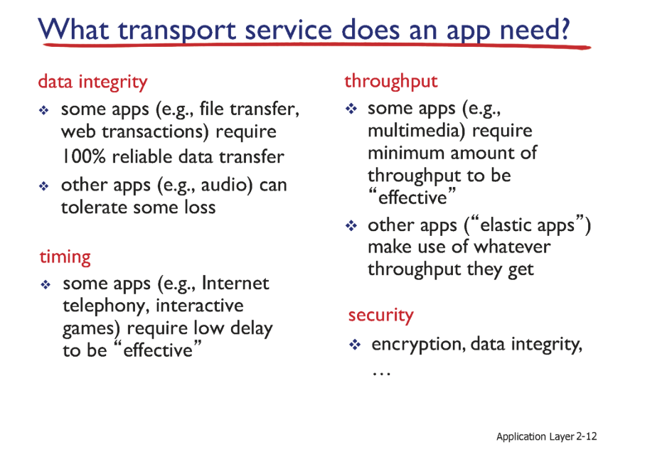 Application Layer에서는 어떤 서비스를 Transport Layer로부터 제공받고싶어할까?
