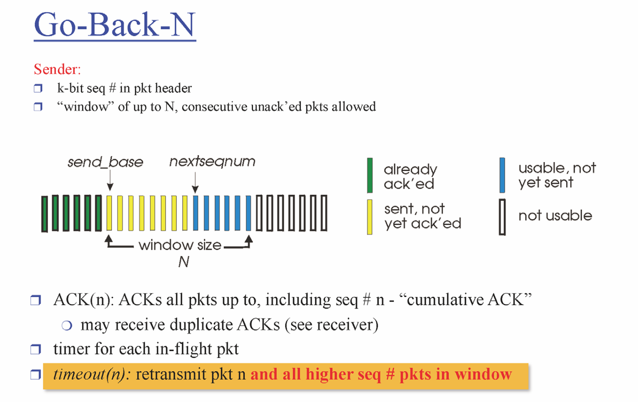 여기서 왜 Go-Back-N인지 알 수 있다. window size N만큼 돌아와서 다시 거기부터 덩어리로 보내야하기 때문이다.