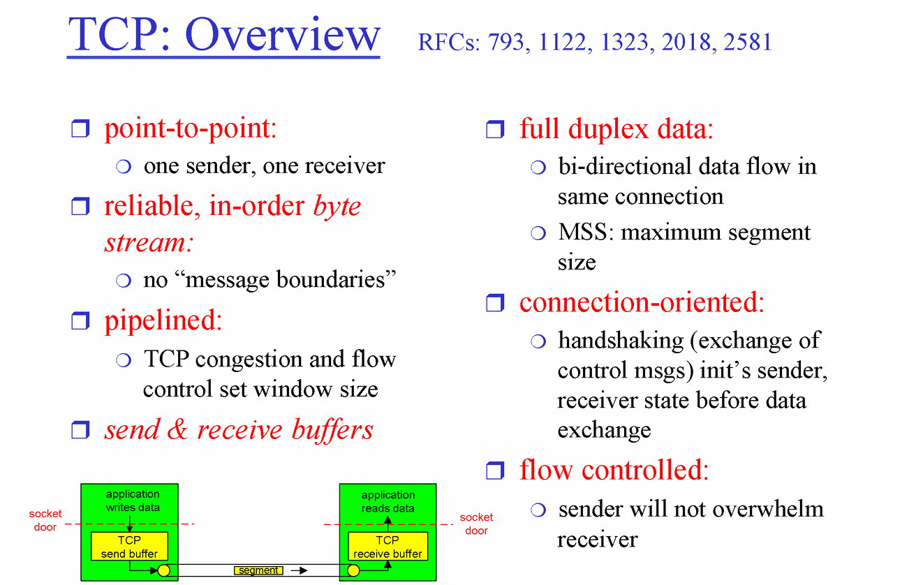 - flow controlled : Receiver에서 받을 수 있는만큼 조절해서 보냄