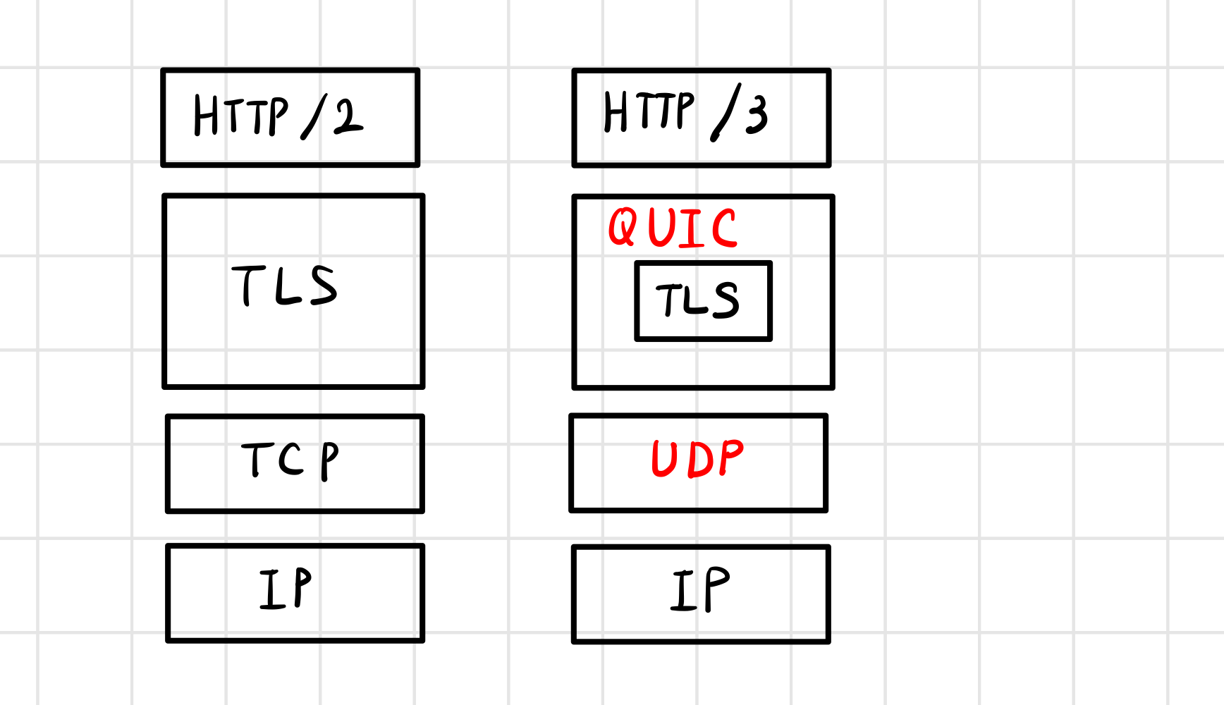 - TCP 위에서 돌아가는 HTTP/2와 달리 QUIC라는 계층 위에서 돌아감