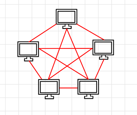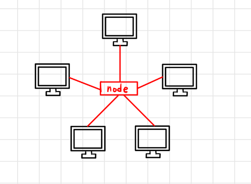 - 중앙에 있는 노드에 모두 연결된 네트워크 구성