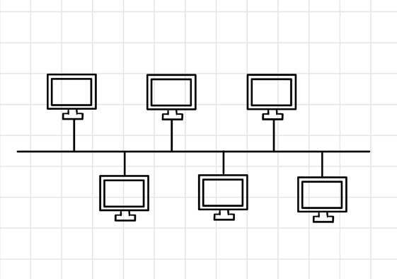 - 중앙 통신 회선 하나에 여러 노드가 연결되어 공유