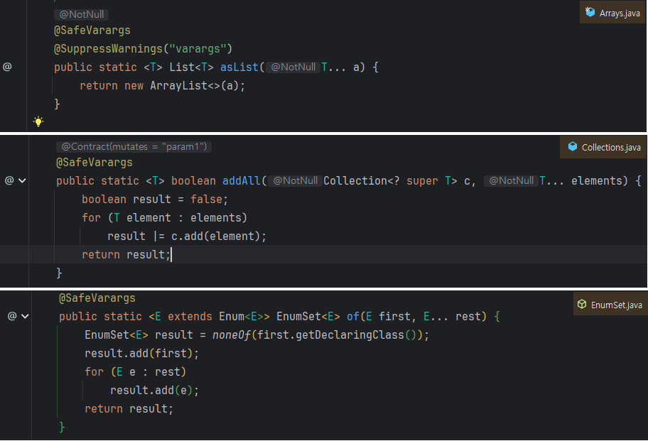 Java 표준 라이브러리의 안전한 varargs 메서드들
