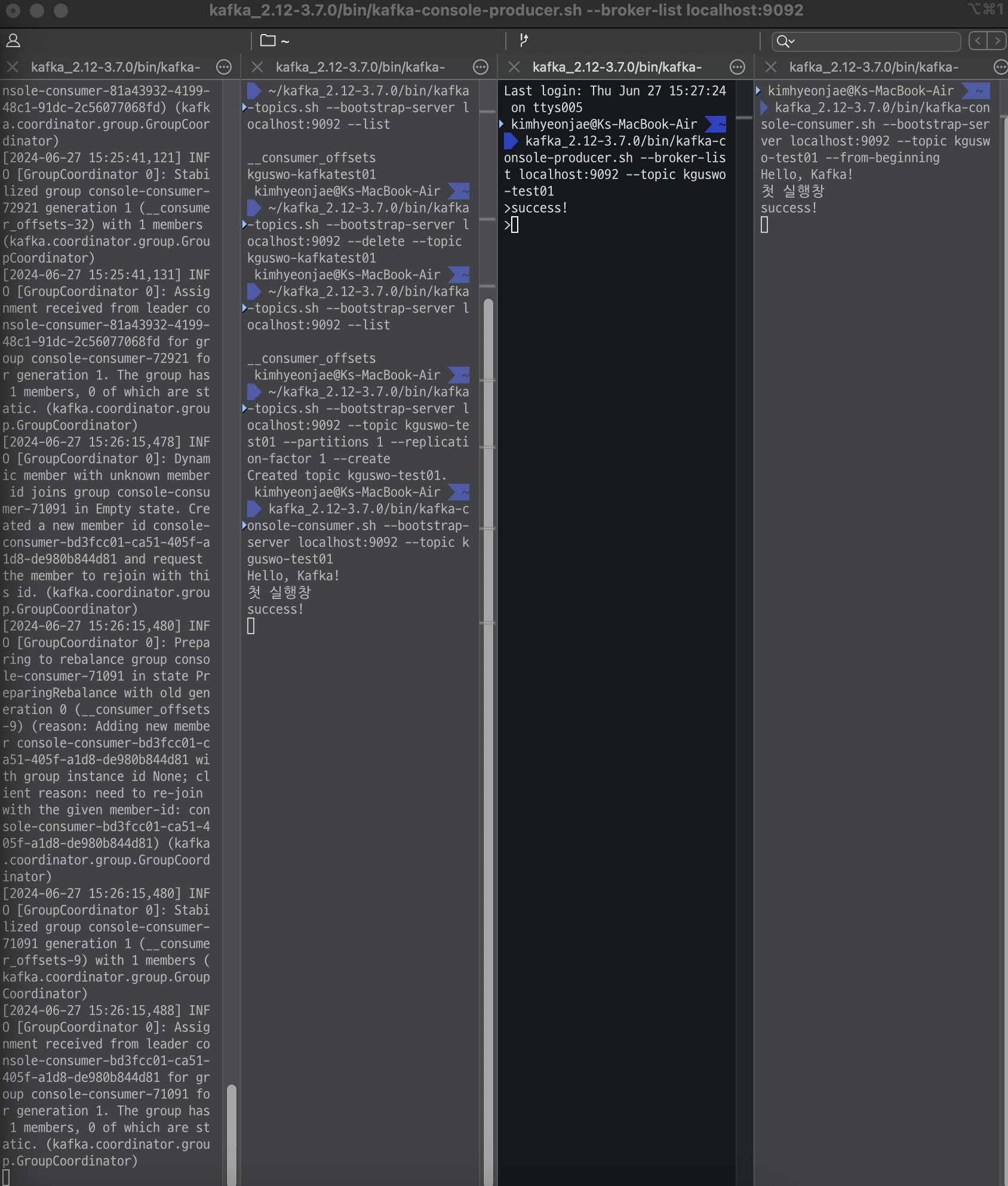 kafka_2.12-3.7.0/bin/kafka-console-consumer.sh --bootstrap-server localhost:9092 --topic kguswo-test01 --from-beginning