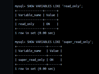 SHOW VARIABLES LIKE 'read_only';