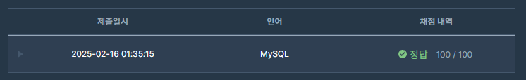 SQL문을 실행하면 다음과 같이 나와야 합니다.