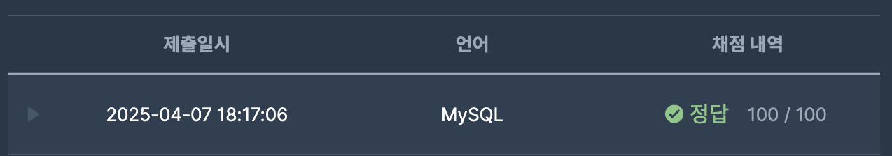따라서 SQL 문을 실행하면 다음과 같이 나와야 합니다.