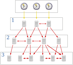NTP는 라디오나 원자시계에 맞추어 시간을 조정하며 밀리초 단위까지 시간을 맞출 수 있다. 기본적으로 straum 이라는 계층구조를 가지는데, straum 0 은 GPS나 세슘 원자 시계 등 시간을 구하는 장비이고, straum 1 은 이들에서 직접 시간을 동기화하는 서버를 의미한다.