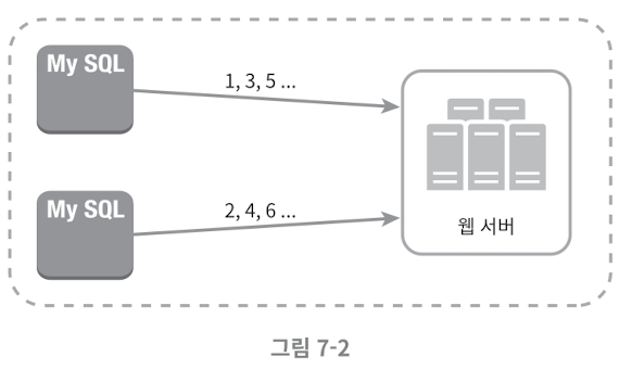 데이터베이스 서버 한 대로는 요구를 충족할 수 없고, 여러 서버가 동시에 auto_increment 값을 생성한다면 중복된 값이 발생할 수도 있기 때문이다.
