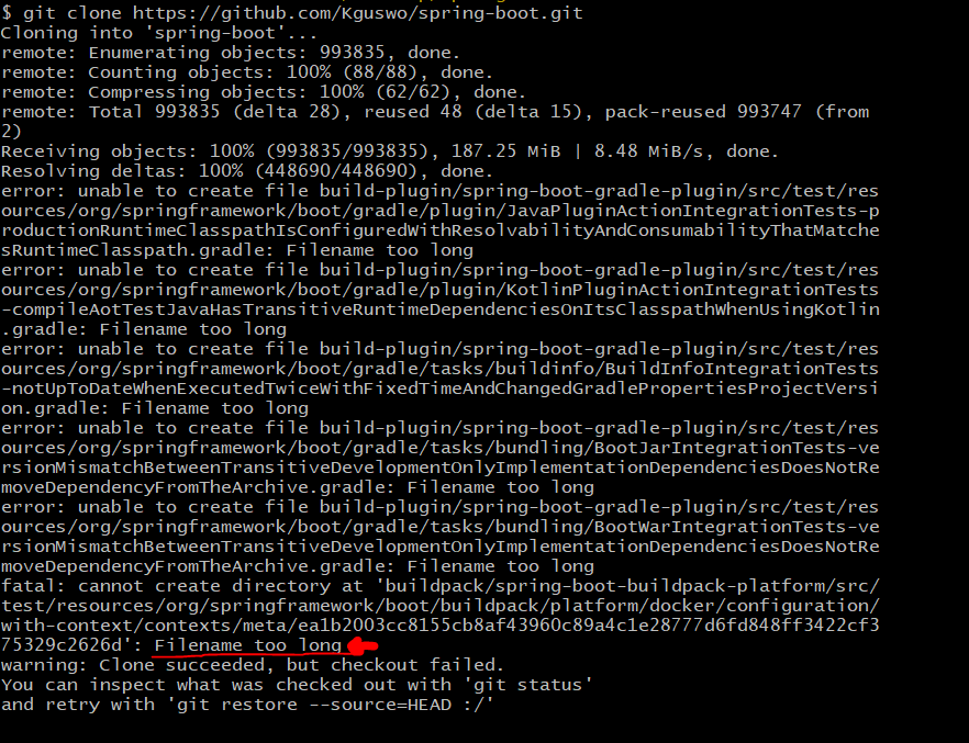 - Spring Boot 같은 대형 프로젝트는 깊은 디렉토리 구조와 긴 파일명을 가지고 있어 이 제한에 걸리기 쉽다.